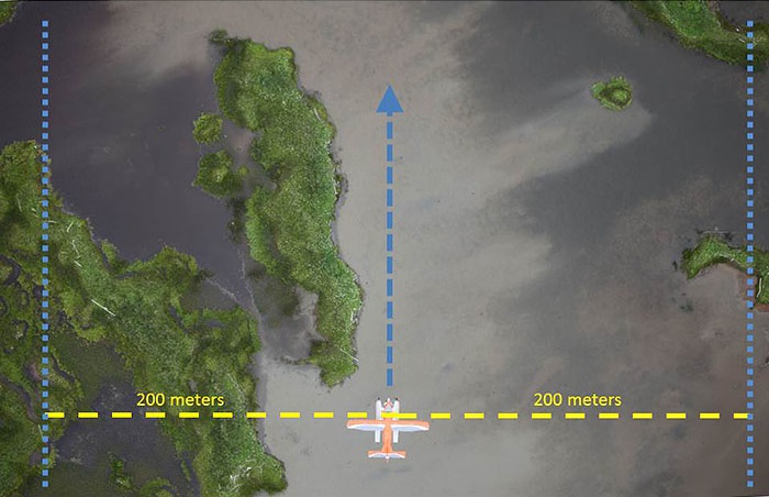 Aerial surveys during the breeding season are typically flown between 100-200 feet above ground level, depending on the survey design, type of aircraft, type of habitat, time of day, and visibility. The low altitude is necessary to identify birds to species.